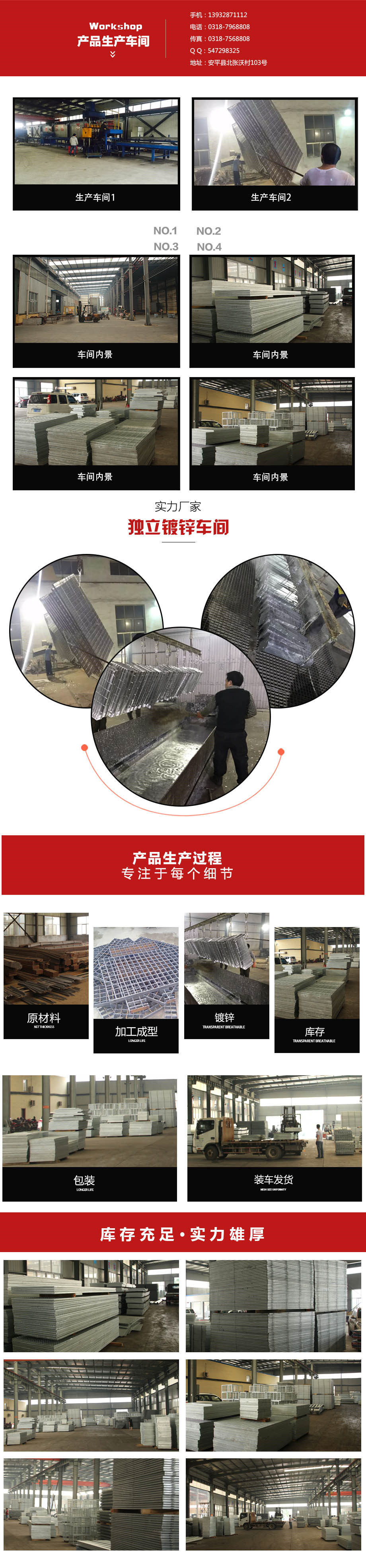 多臺檢測設(shè)備和精良的加工工藝,生產(chǎn)制造鋼格板。主要生產(chǎn)熱鍍鋅鋼格板、熱鍍鋅鋼格柵板、鍍鋅鋼格柵、鍍鋅格柵板、熱鍍鋅格柵板、平臺鋼格板、格柵板、蓋溝板、鋼格板等。廣泛用于;石油、化工、港口、電力、運(yùn)輸、造紙、鋼鐵、市政、房地產(chǎn)、制造業(yè)等各個領(lǐng)域。我們集科研、生產(chǎn)、銷售、服務(wù)為一體,多年來致力于鋼格板的制作和研發(fā),技術(shù)力量雄厚,擁有成熟的工藝以及豐富的鋼格板生產(chǎn)和安裝經(jīng)驗。